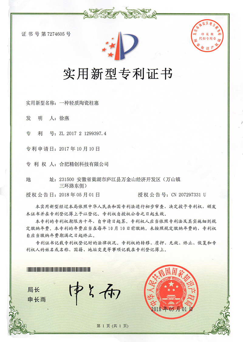(2018實(shí)用新型)一種輕質(zhì)陶瓷柱塞